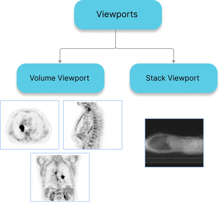 - Having a VolumeViewport enables Multi-planar reformation or reconstruction (MPR) by design, in which you can visualize the volume from various different orientations without addition of performance costs.
