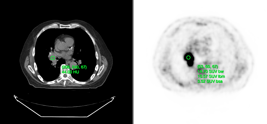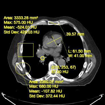 will give Hounsfield Units and for PET it will calculate SUV stats.